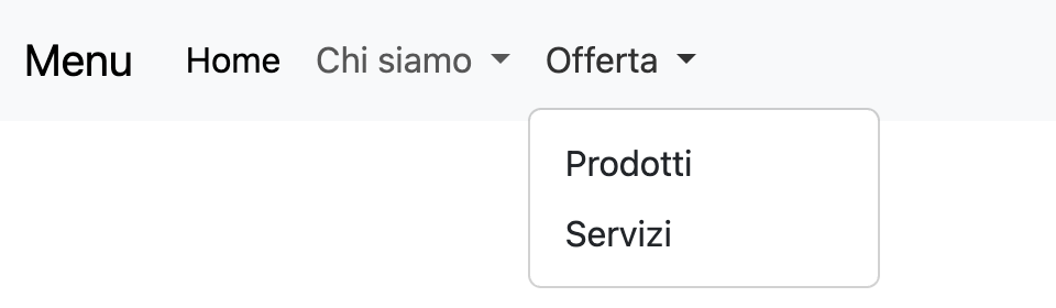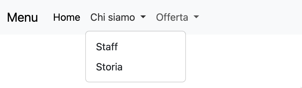Utilizzando il componente navbar di Bootstrap (https://getbootstrap.com/docs/5.3/components/navbar) realizzare un menu per il sito che ha questa struttura