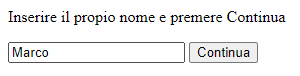 L'utente deve inserire il proprio nome e premere Continua. Alla pressione del tasto continua la pagina deve visualizzare il seguente contenuto